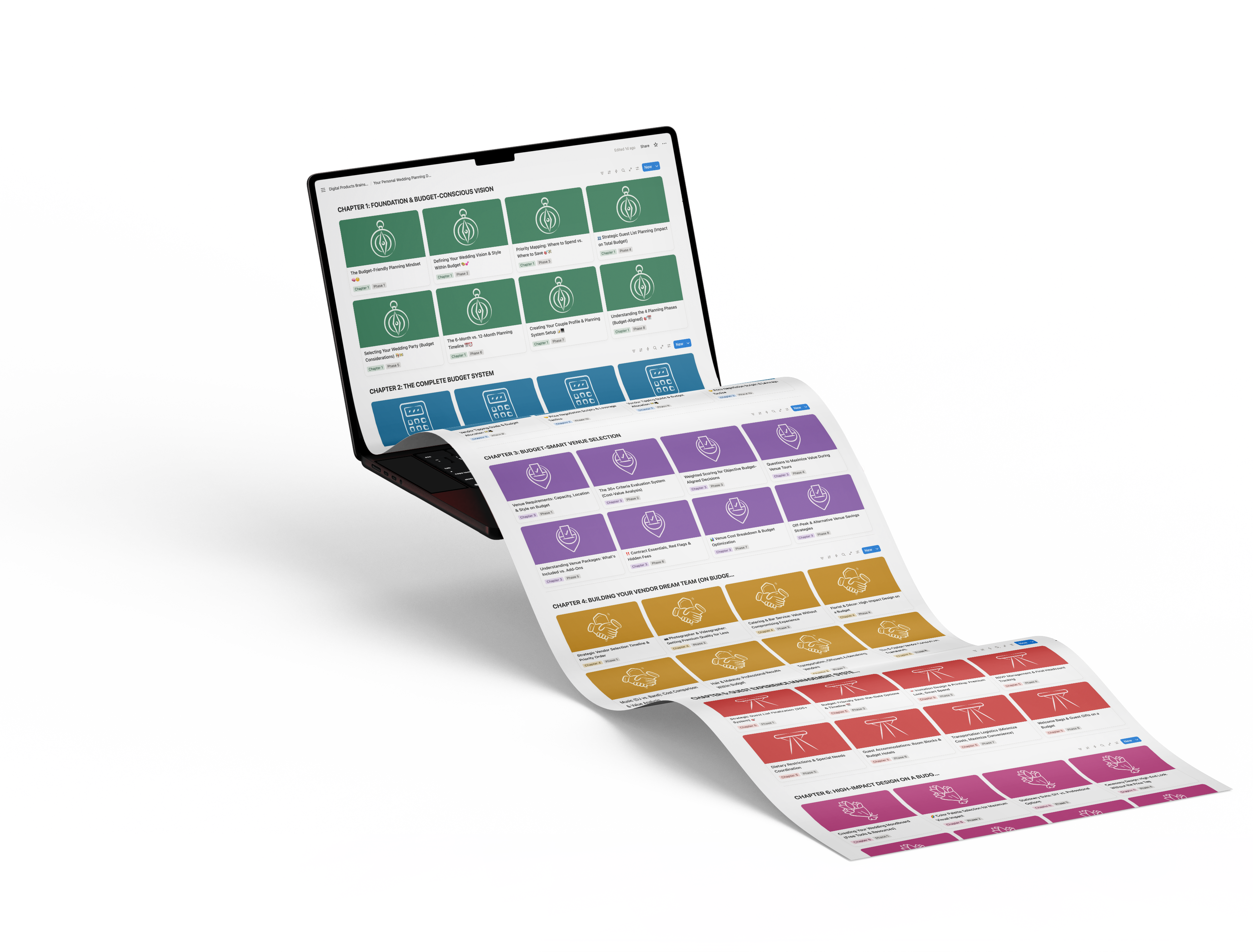 Yes! This system works for any budget from $5,000 micro-weddings to $30,000+ celebrations. The frameworks help you allocate whatever you have strategically.